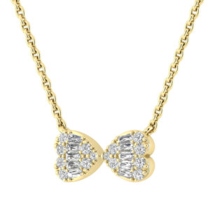 LADIES PENDANT WITH CHAIN 0.25CT ROUND/BAGUETTE DIAMOND 14K YELLOW GOLD (SI QUALITY)