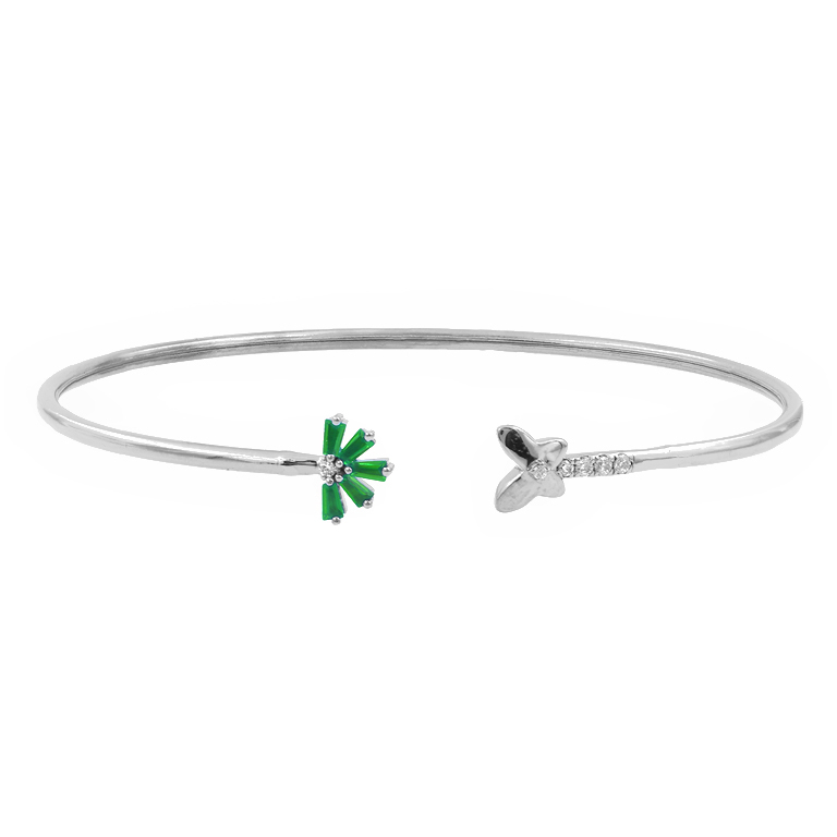 LADIES BANGLE 0.25CT ROUND/BAGUETTE DIAMOND 14K WHITE GOLD (CENTER STONE 0.20CT GREEN EMERALD BAGUETTE DIAMOND)