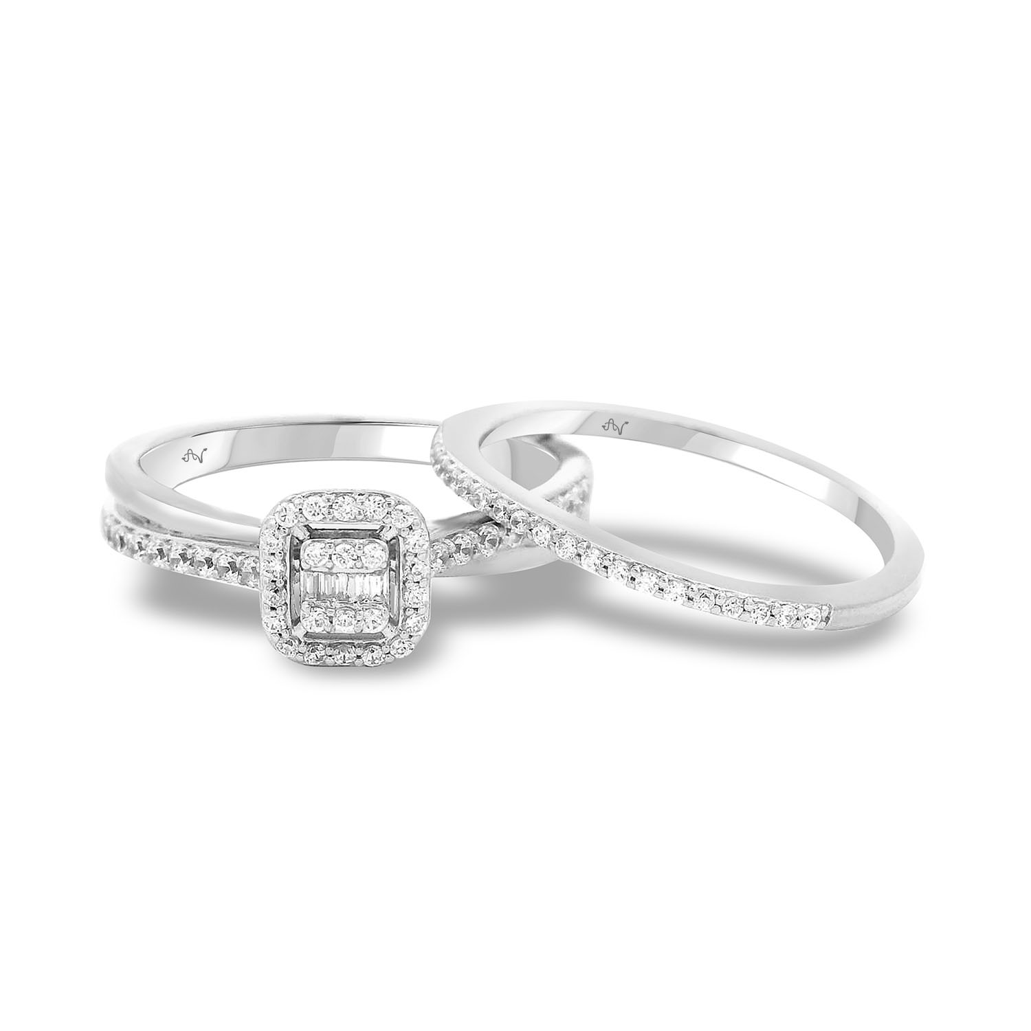 LADIES BRIDAL SET 0.33CT ROUND/BAGUETTE DIAMOND 14K WHITE GOLD