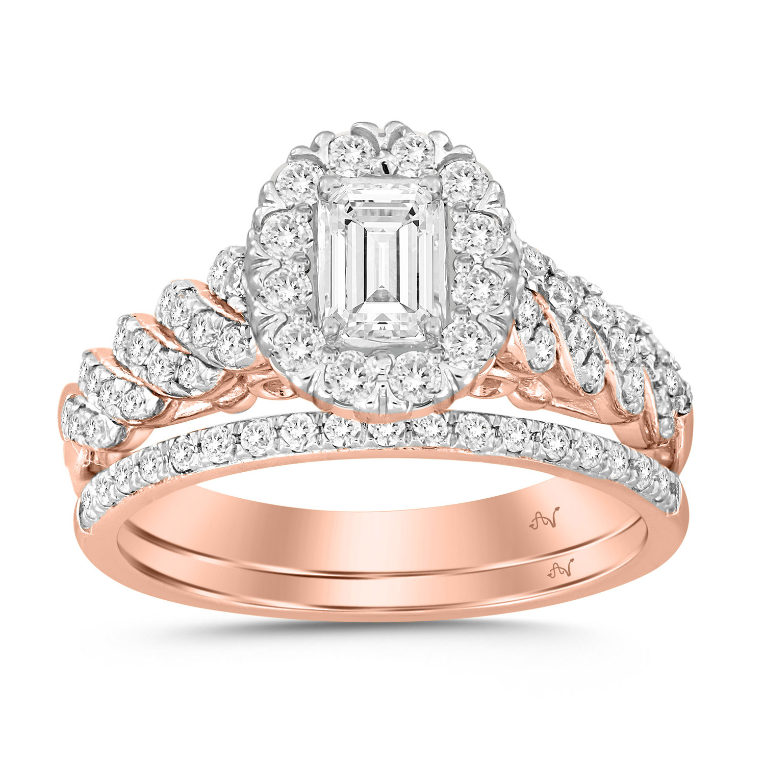 LADIES BRIDAL SET 0.70CT ROUND/EMERALD DIAMOND 14K ROSE GOLD (CENTER STONE 0.30CT EMERALD DIAMOND)