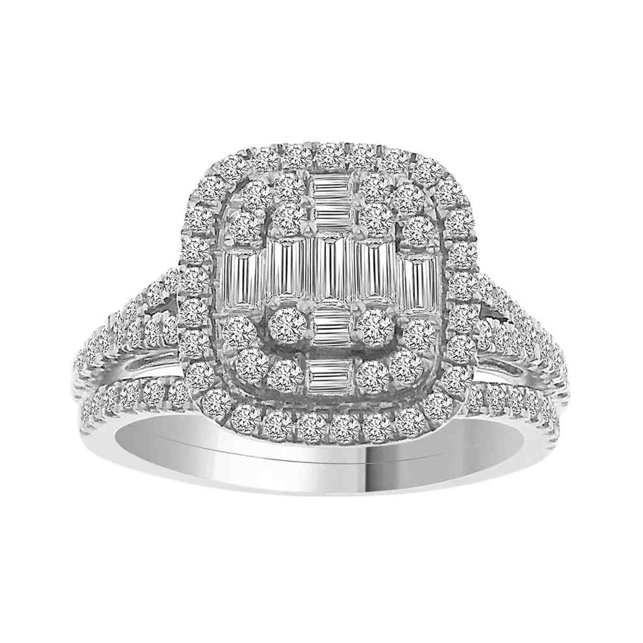 LADIES BRIDAL SET 1.00CT ROUND/BAGUETTE DIAMOND 14K WHITE GOLD