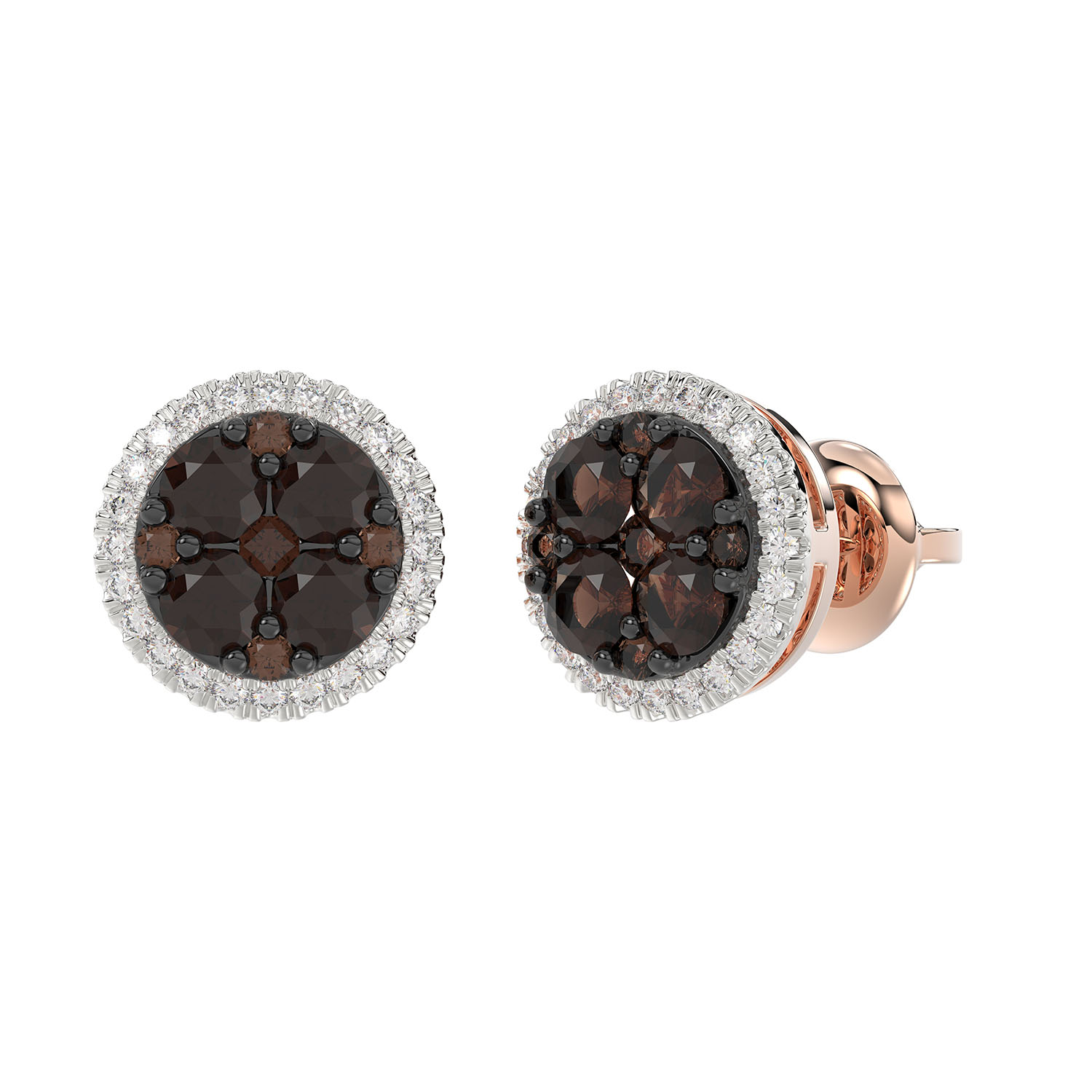 LADIES EARRINGS 1.00CT ROUND/DARK BROWN DIAMOND 14K ROSE GOLD