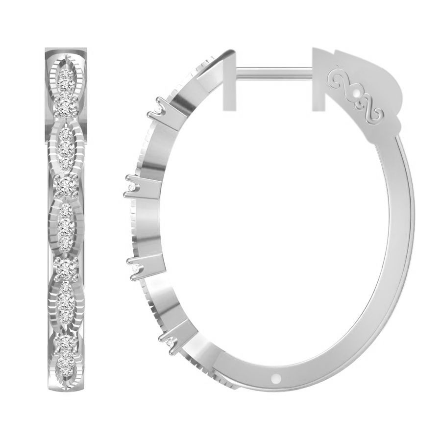 LADIES HOOP EARRINGS 0.50CT ROUND DIAMOND 10K WHITE GOLD
