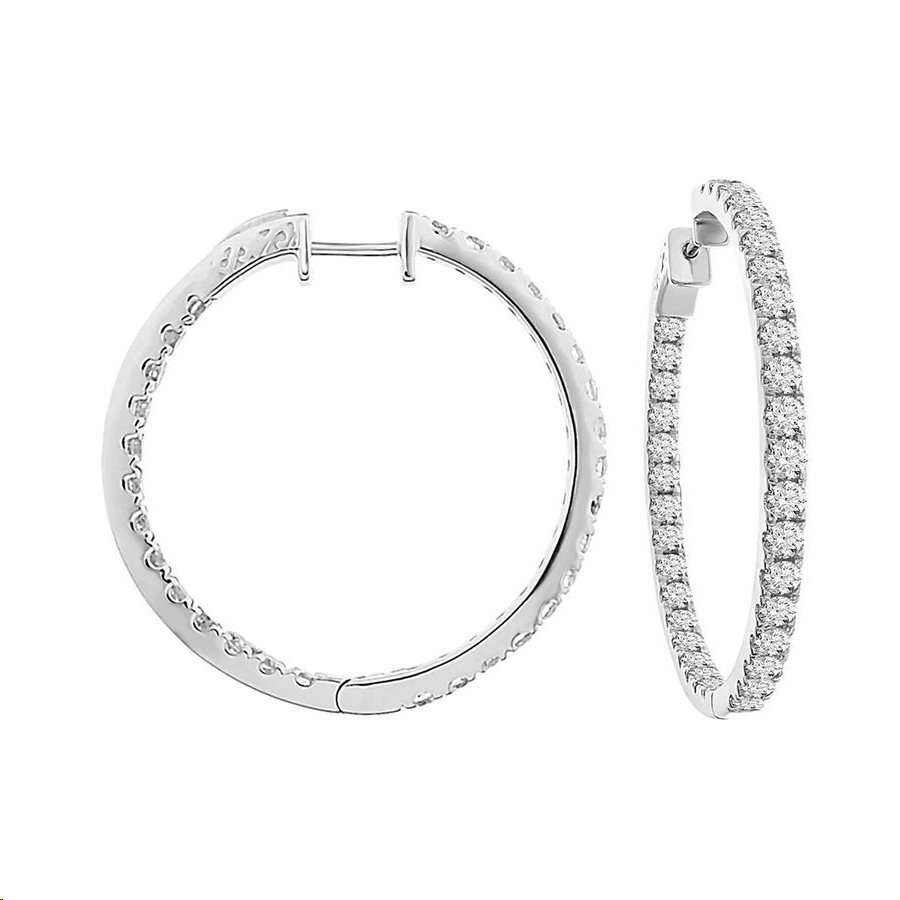 LADIES HOOP EARRINGS 7.00CT ROUND DIAMOND 14K WHITE GOLD