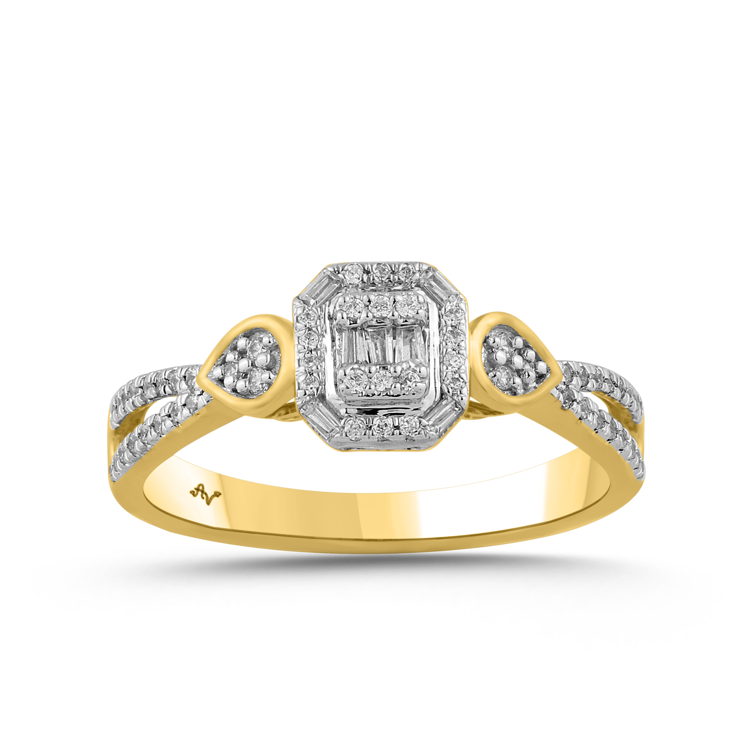 LADIES RING 0.20CT ROUND/BAGUETTE DIAMOND 14K YELLOW GOLD
