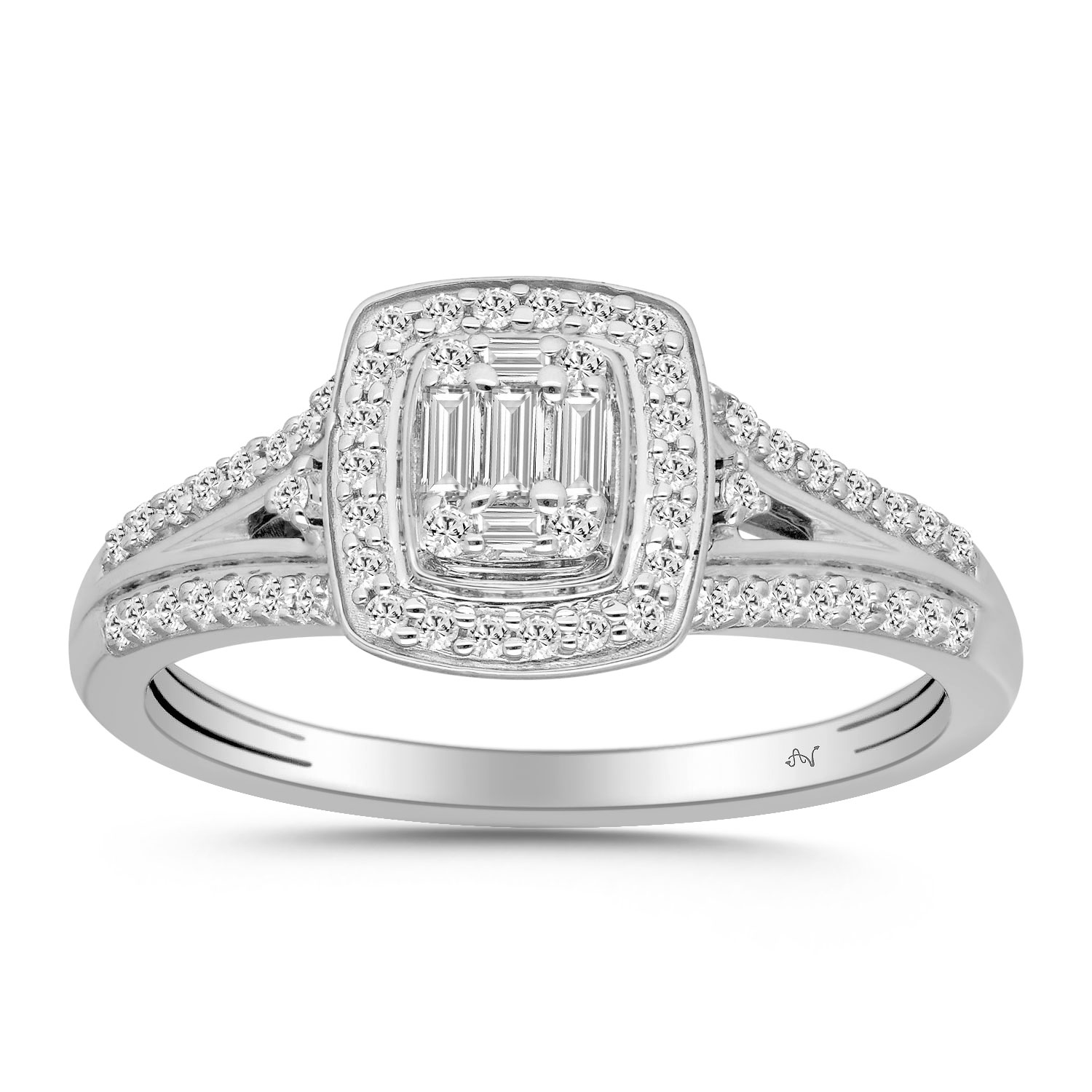 LADIES RING 0.33CT ROUND/BAGUETTE DIAMOND 10K WHITE GOLD