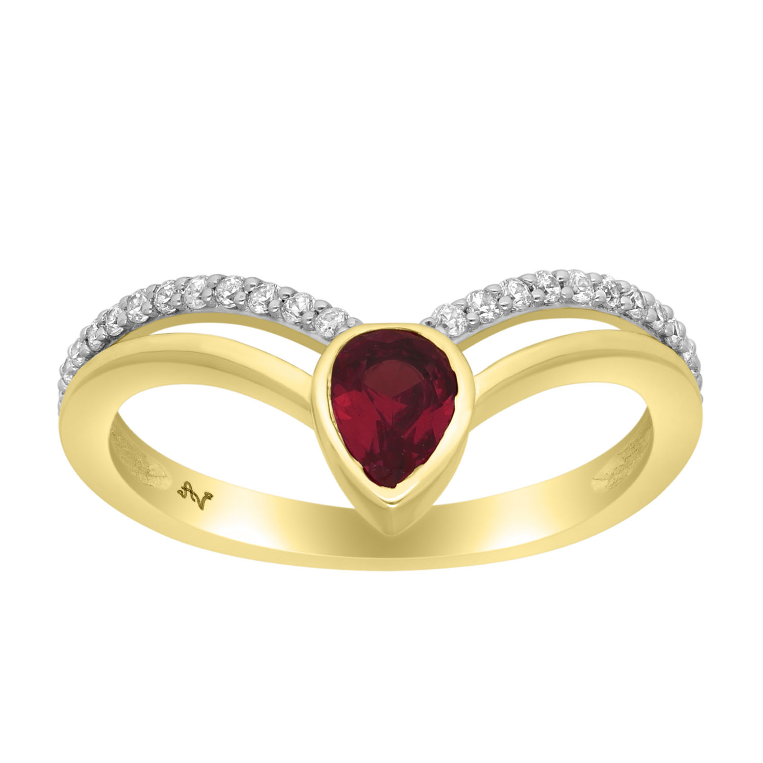 LADIES RING 0.65CT ROUND/PEAR/RUBY DIAMOND 14K YELLOW GOLD