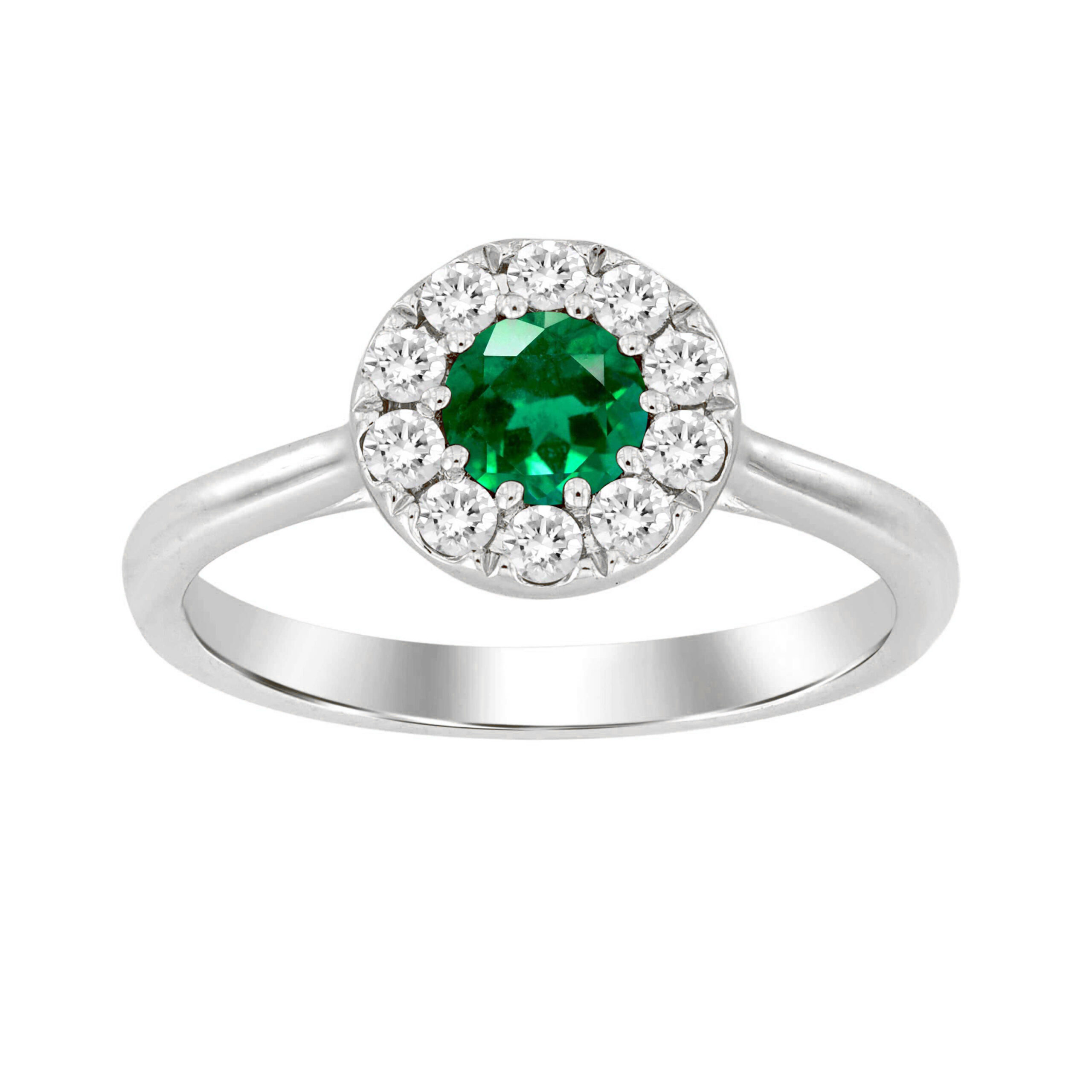 LADIES RING 0.80CT ROUND/EMERALD DIAMOND 14K WHITE GOLD (CENTER STONE EMERALD APPROX- 0.50CT)