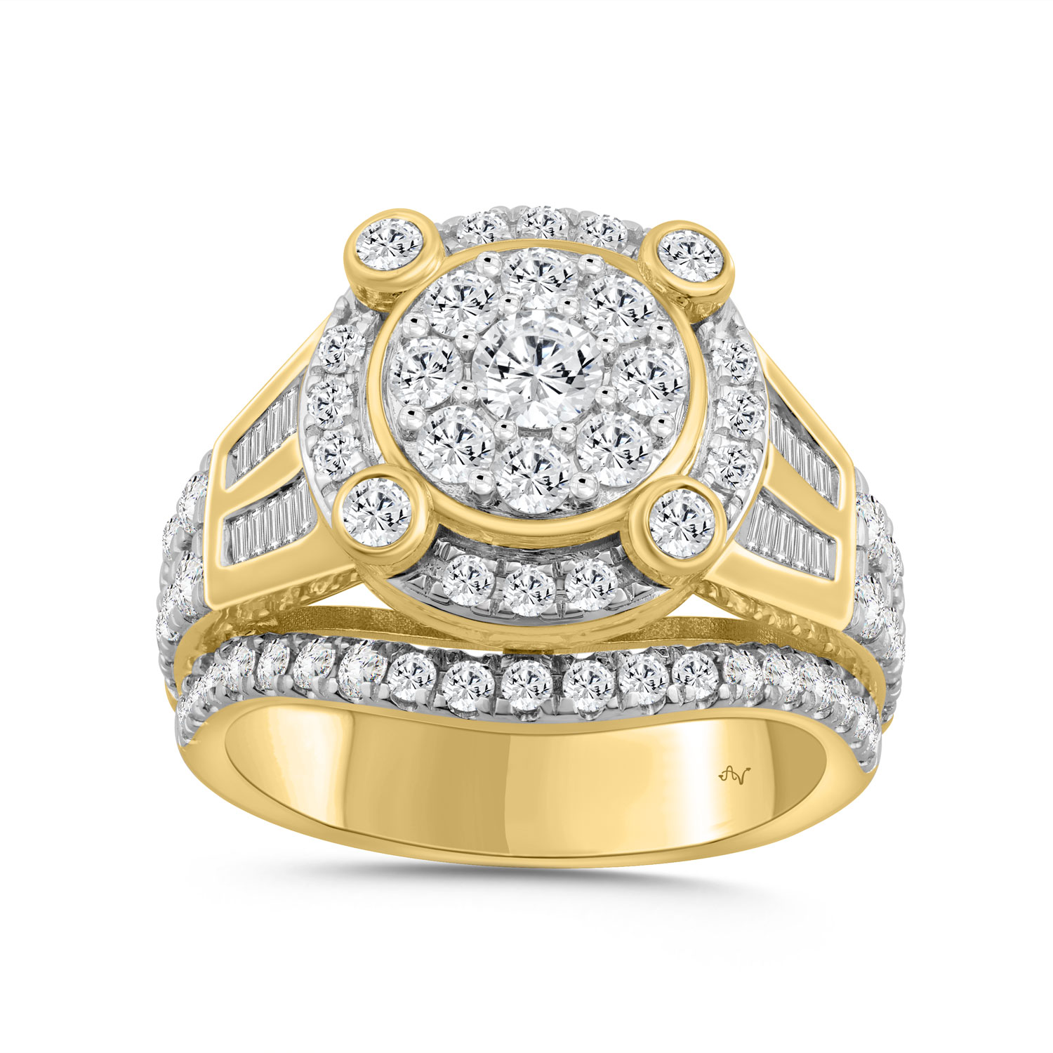 LADIES RING 1.00CT ROUND/BAGUETTE DIAMOND 10K YELLOW GOLD