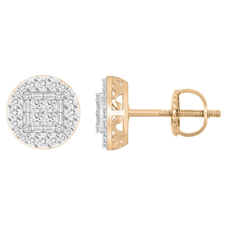 LADIES STUD EARRINGS 0.75CT ROUND/PRINCESS/BAGUETTE DIAMOND 10K ROSE GOLD