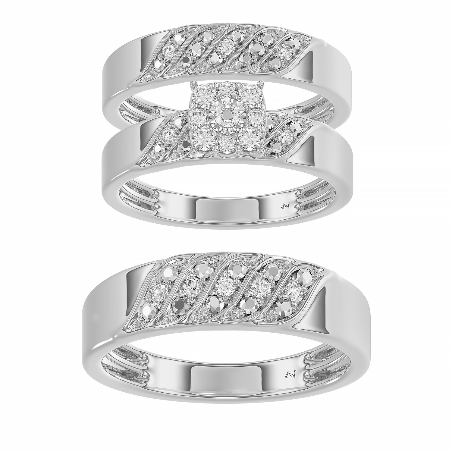 LADIES TRIO SET 0.33CT ROUND DIAMOND 10K WHITE GOLD