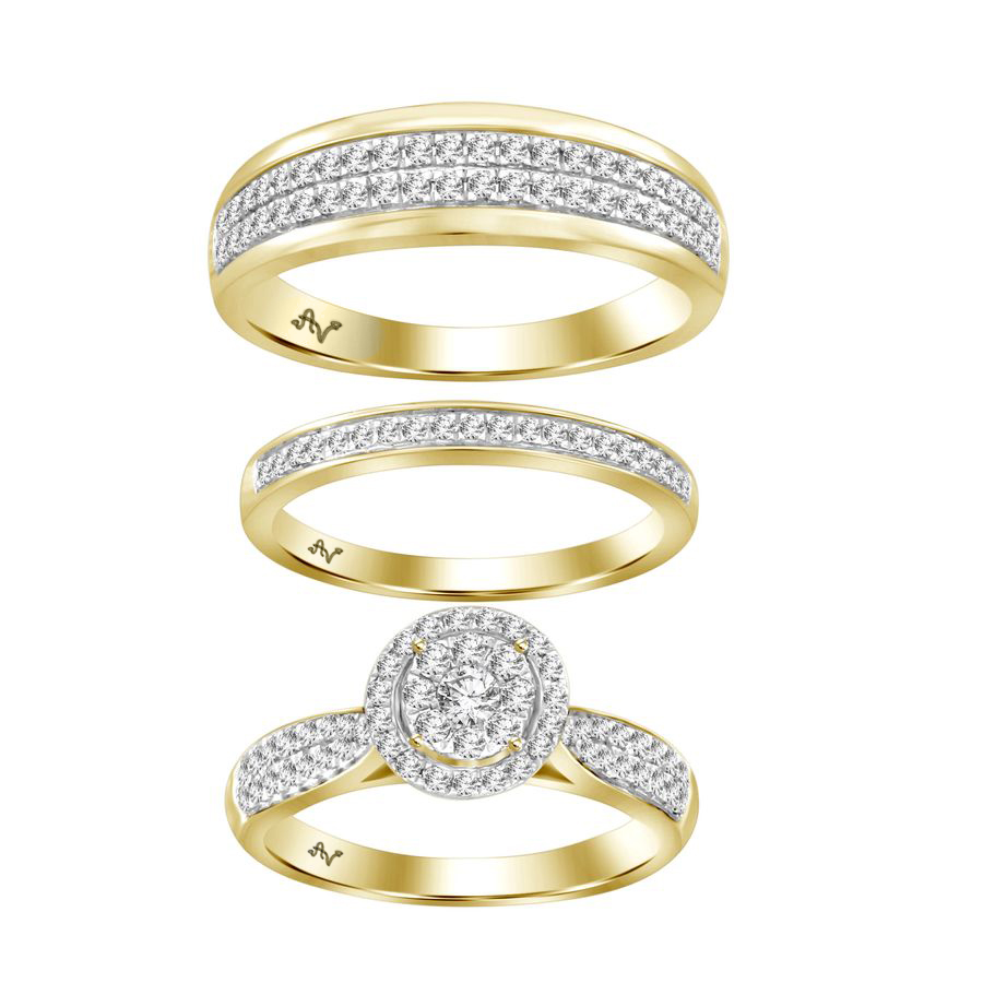 LADIES TRIO SET 1.00CT ROUND DIAMOND 10K YELLOW GOLD