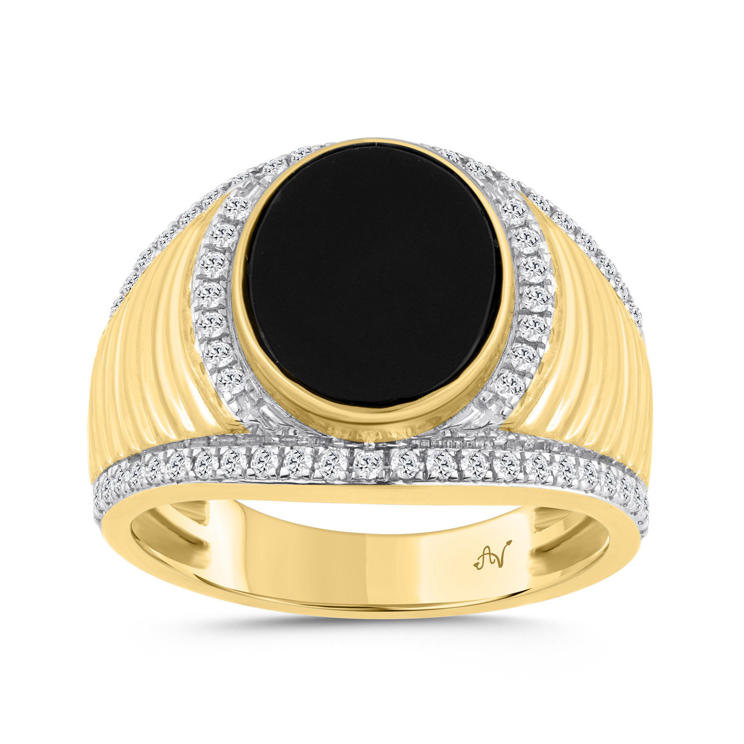 MEN'S RING 0.50CT ROUND DIAMOND OVAL DIAMOND 10K YELLOW GOLD