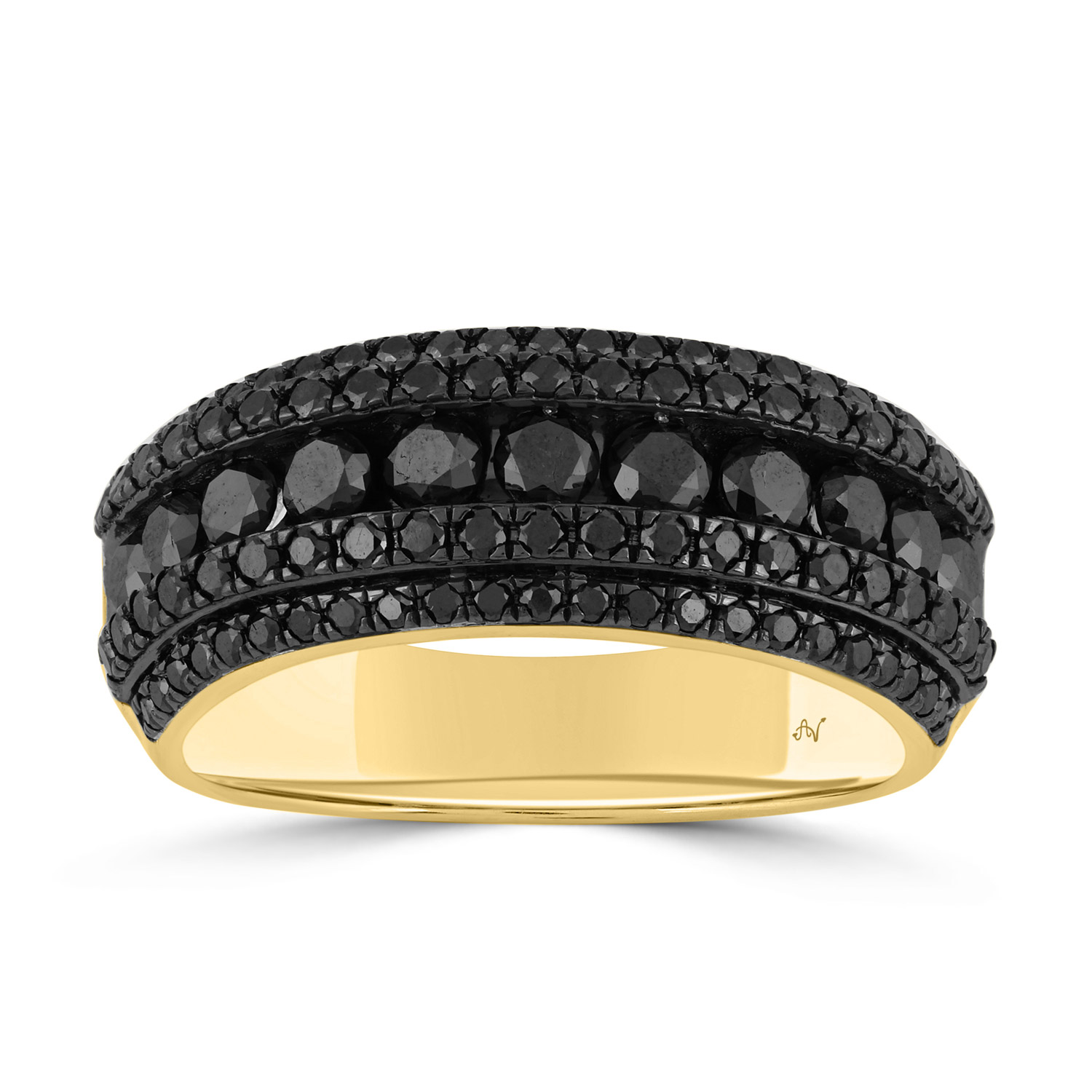 MEN'S RING 2.00CT ROUND BLACK DIAMOND 10K YELLOW GOLD